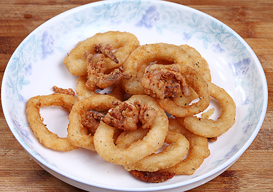 Light dusted crumbed squid tentacle and rings