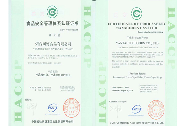 Awarded the HACCP Verification Certificate from ENTRY-EX